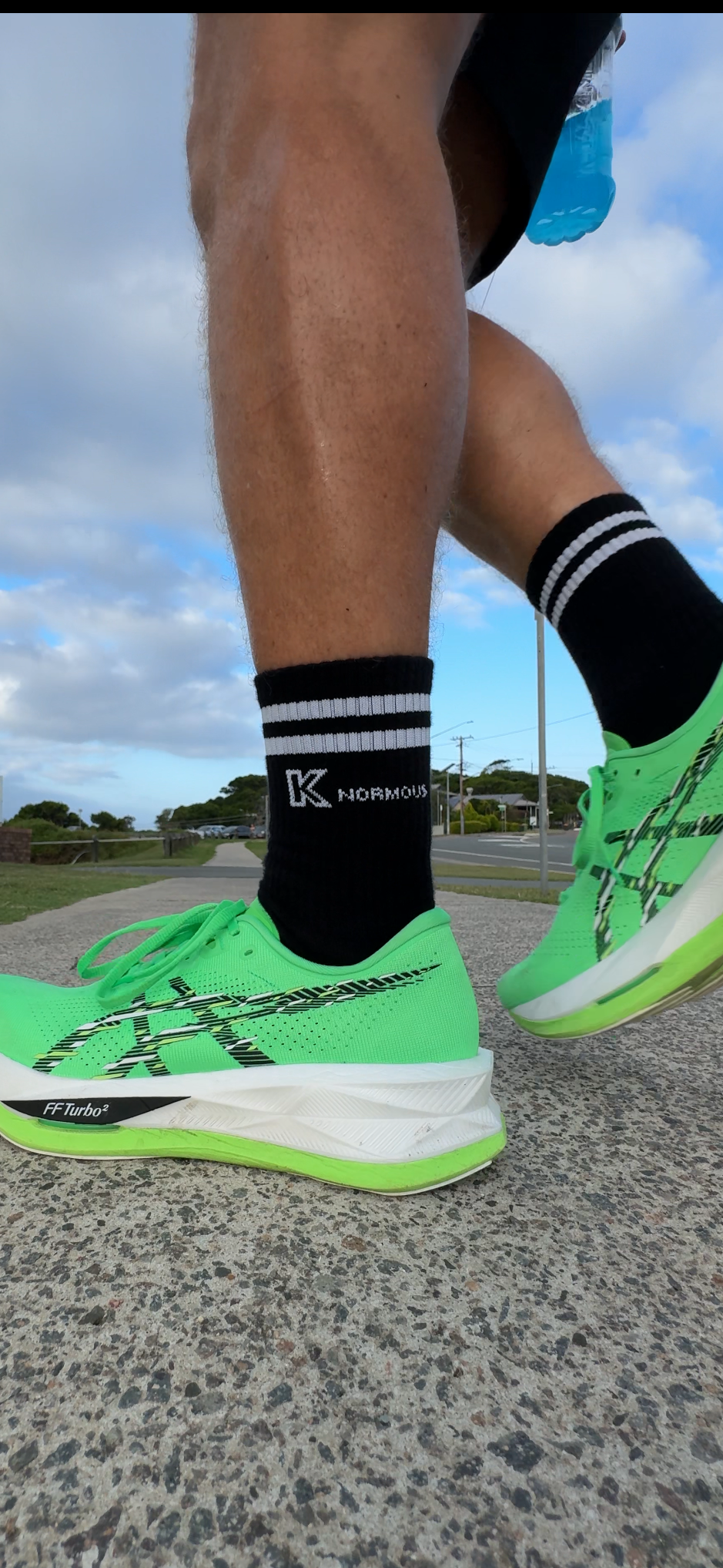 I created socks that aren't just another boring pair you throw on in the morning. These are made for people who move! The ones who hit the gym, chase goals and bring good vibes everywhere they go. Comfortable, fun and built to keep up with you. Why should your socks be any less active then you are!